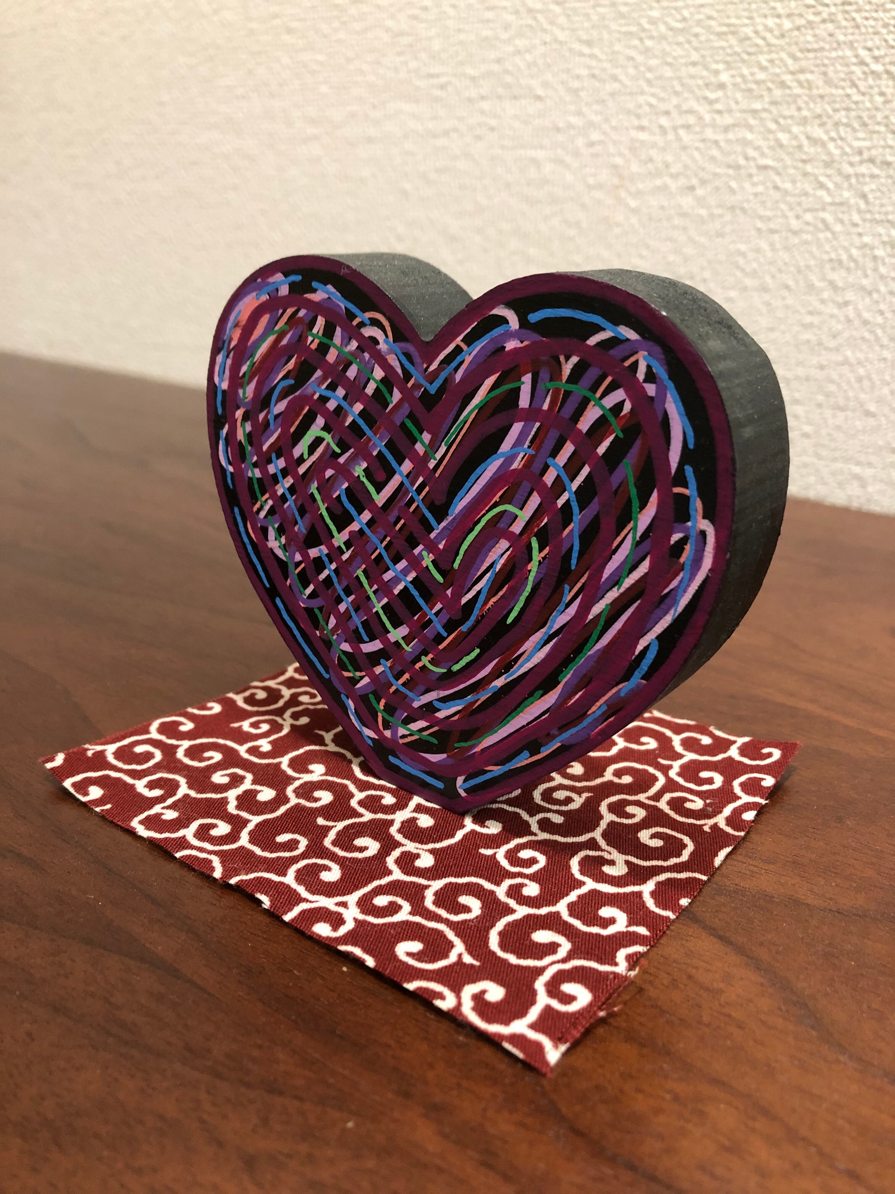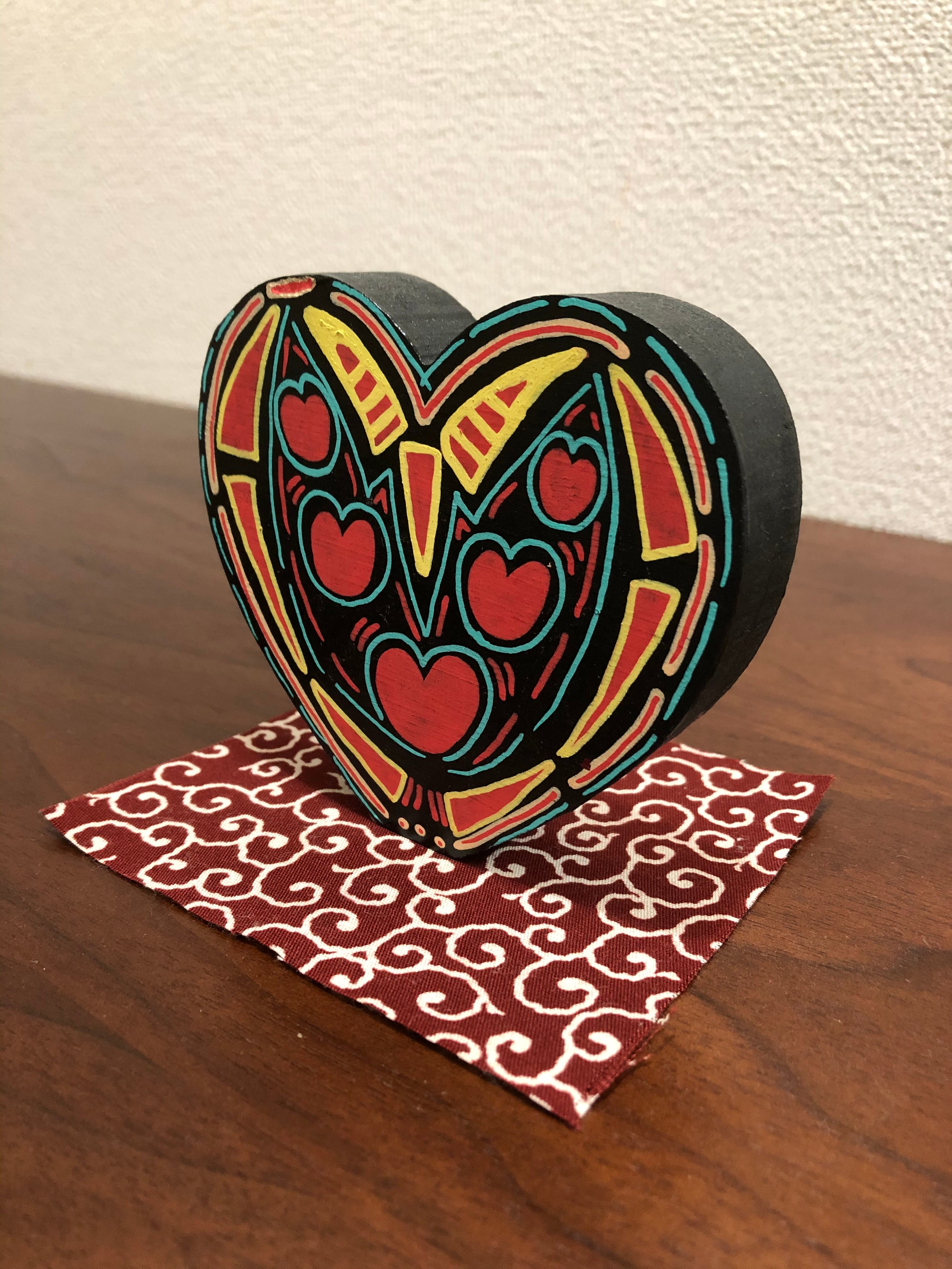 ハート型の置物 (手描きの模様)