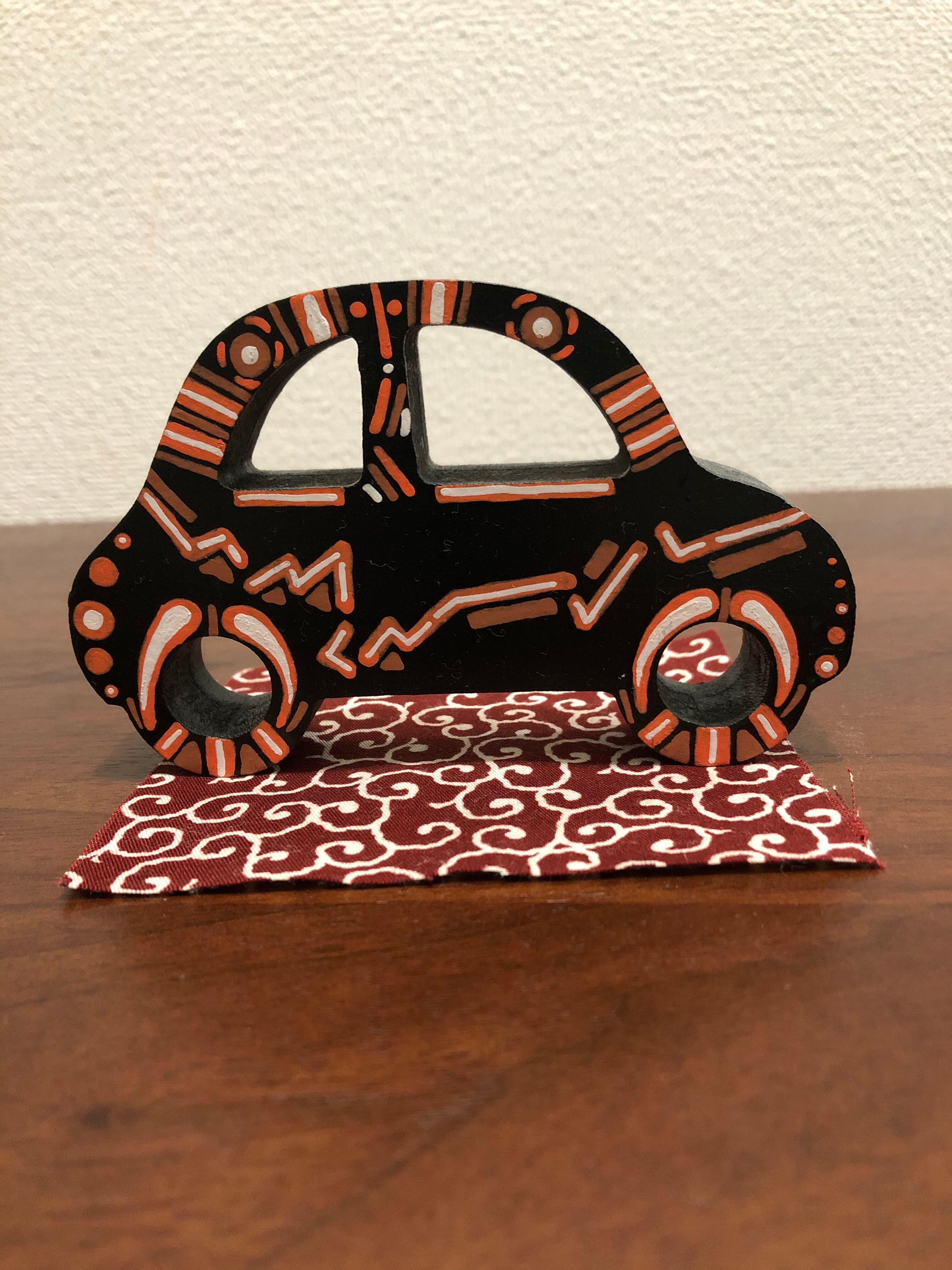 クルマ型の置物に手描きで模様を施し、オシャレなインテリアに仕上げました!