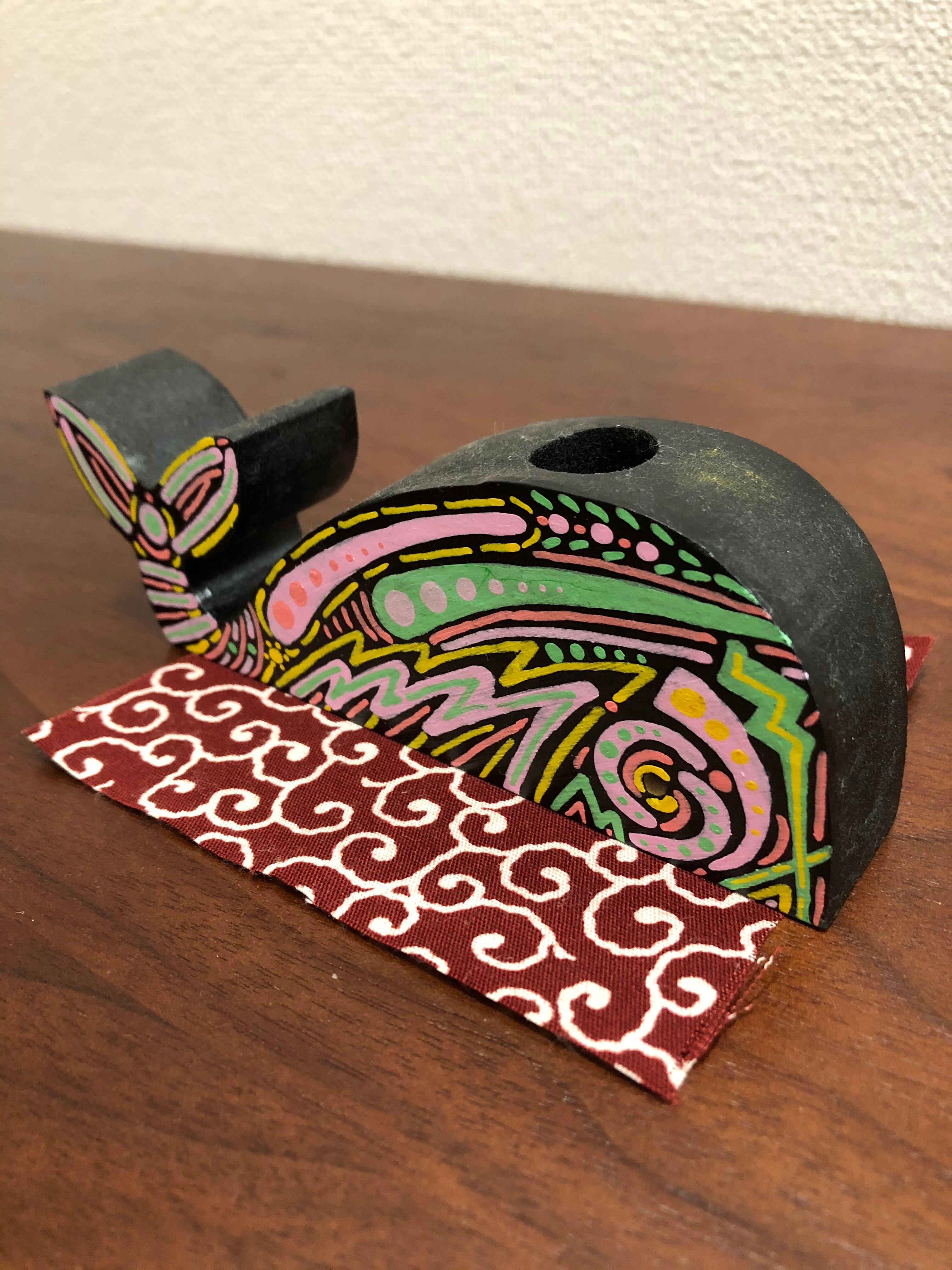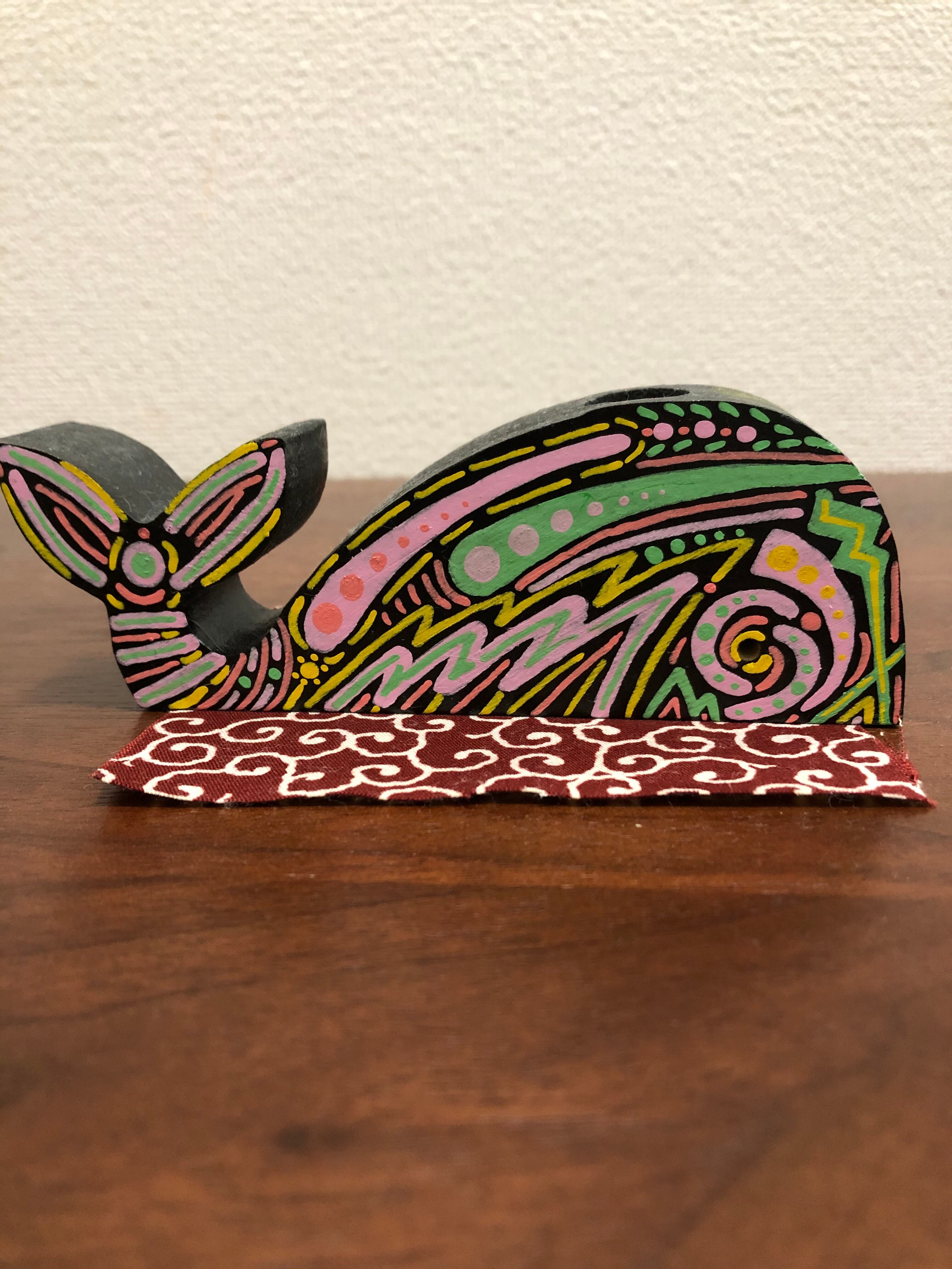 クジラ型の置物に手描きで模様を施し、オシャレなインテリアに仕上げました!
