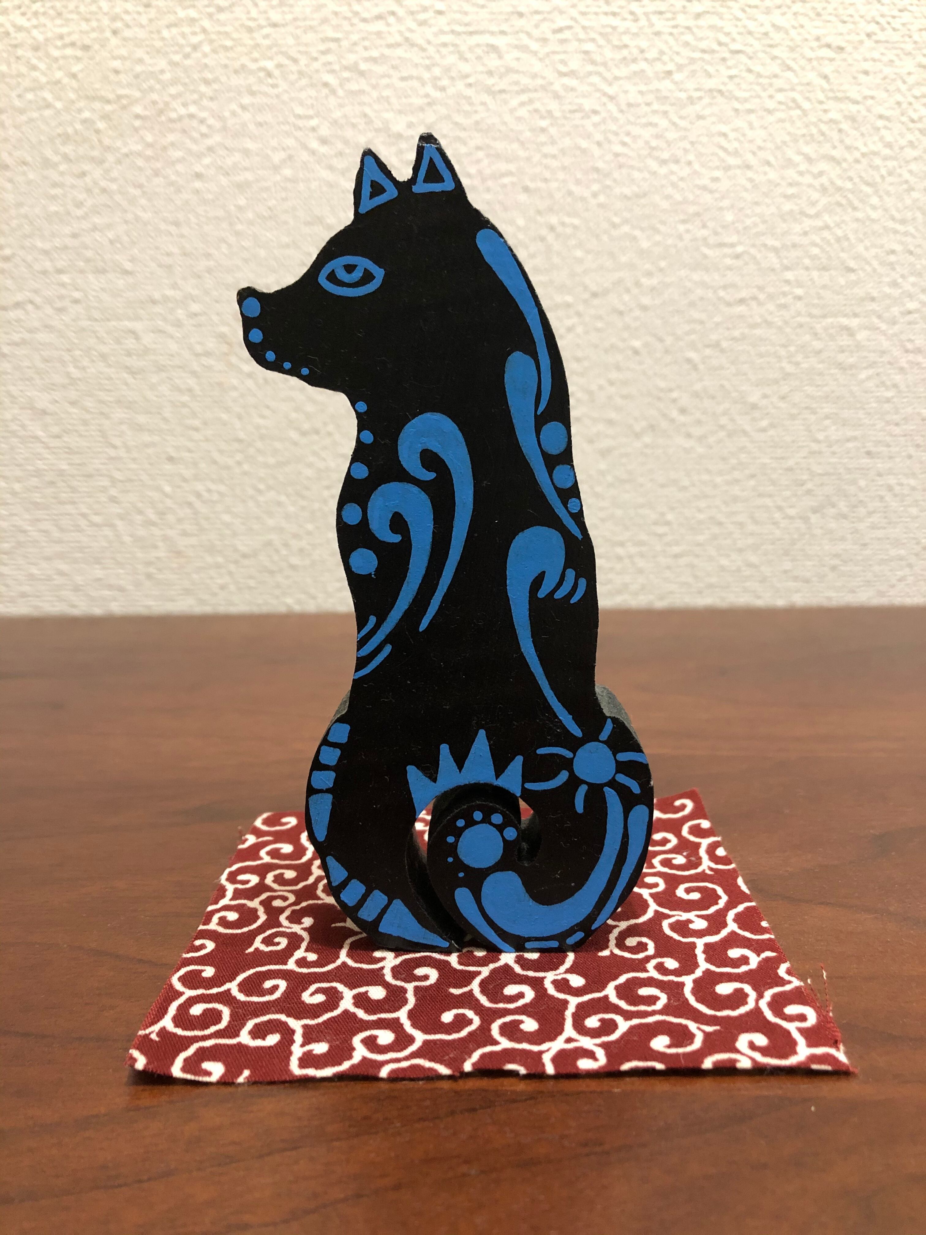 犬型の置物に手描きで模様を施し、オシャレなインテリアに仕上げました!
